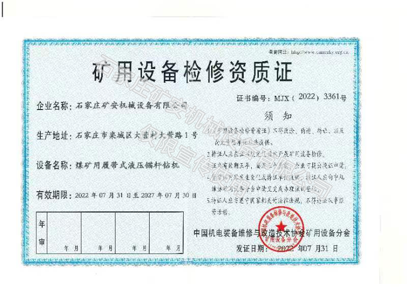 石家莊礦安機(jī)械設(shè)備有限公司成立于2011年3月,公司位于風(fēng)景優(yōu)美、科技發(fā)達(dá)、交通便利的石家莊市欒城區(qū),是一家專注生產(chǎn)煤礦井下支護(hù)機(jī)具(錨桿鉆機(jī))和安全鉆機(jī)(防突,架柱等)及氣動(dòng)隔膜泵等礦用機(jī)械設(shè)備的********,是國(guó)內(nèi)煤礦機(jī)械裝備的生產(chǎn)商和服務(wù)商,根據(jù)用戶需求提供井下適用的鉆機(jī)施工解決方案。公司致力于打造研發(fā)、制造、銷售、服務(wù)為一體的現(xiàn)代化企業(yè),全心全意為煤礦生產(chǎn)保駕護(hù)航。 ? 公司建有裝配車間、機(jī)加車間和調(diào)試車間,擁有嚴(yán)格的質(zhì)量控制體系、先進(jìn)的產(chǎn)品開發(fā)系統(tǒng)、完善的試驗(yàn)檢測(cè)設(shè)施、良好的售后服務(wù)保障。先后與中煤科工集團(tuán)沈陽(yáng)研究院、西安研究院、太原理工大學(xué)、燕山大學(xué)等知名院校建立了緊密的合作關(guān)系。 ? 公司產(chǎn)品主要銷往山西、陜西、山東、內(nèi)蒙古、黑龍江、云南、貴州等七十多個(gè)礦區(qū)和地方煤礦,擁有一支成熟的售后技術(shù)團(tuán)隊(duì),并且和中煤集團(tuán)、華電煤業(yè)集團(tuán)、華潤(rùn)煤業(yè)集團(tuán)、潞安集團(tuán)、山西焦煤、淮北礦業(yè)等國(guó)內(nèi)知名企業(yè)達(dá)成長(zhǎng)期合作關(guān)系。 ? 公司始終秉持“讓煤礦生產(chǎn)更安全”的發(fā)展使命,力求誠(chéng)信與創(chuàng)新,追求卓越與完美,深知“實(shí)實(shí)在在、心無(wú)旁騖做實(shí)業(yè)”,這才是本分!石家莊礦安機(jī)械設(shè)備有限公司愿與您攜手共進(jìn),共同發(fā)展!為客戶創(chuàng)造價(jià)值,提供優(yōu)質(zhì)的產(chǎn)品和*佳的服務(wù)是我們永無(wú)止境的理念!